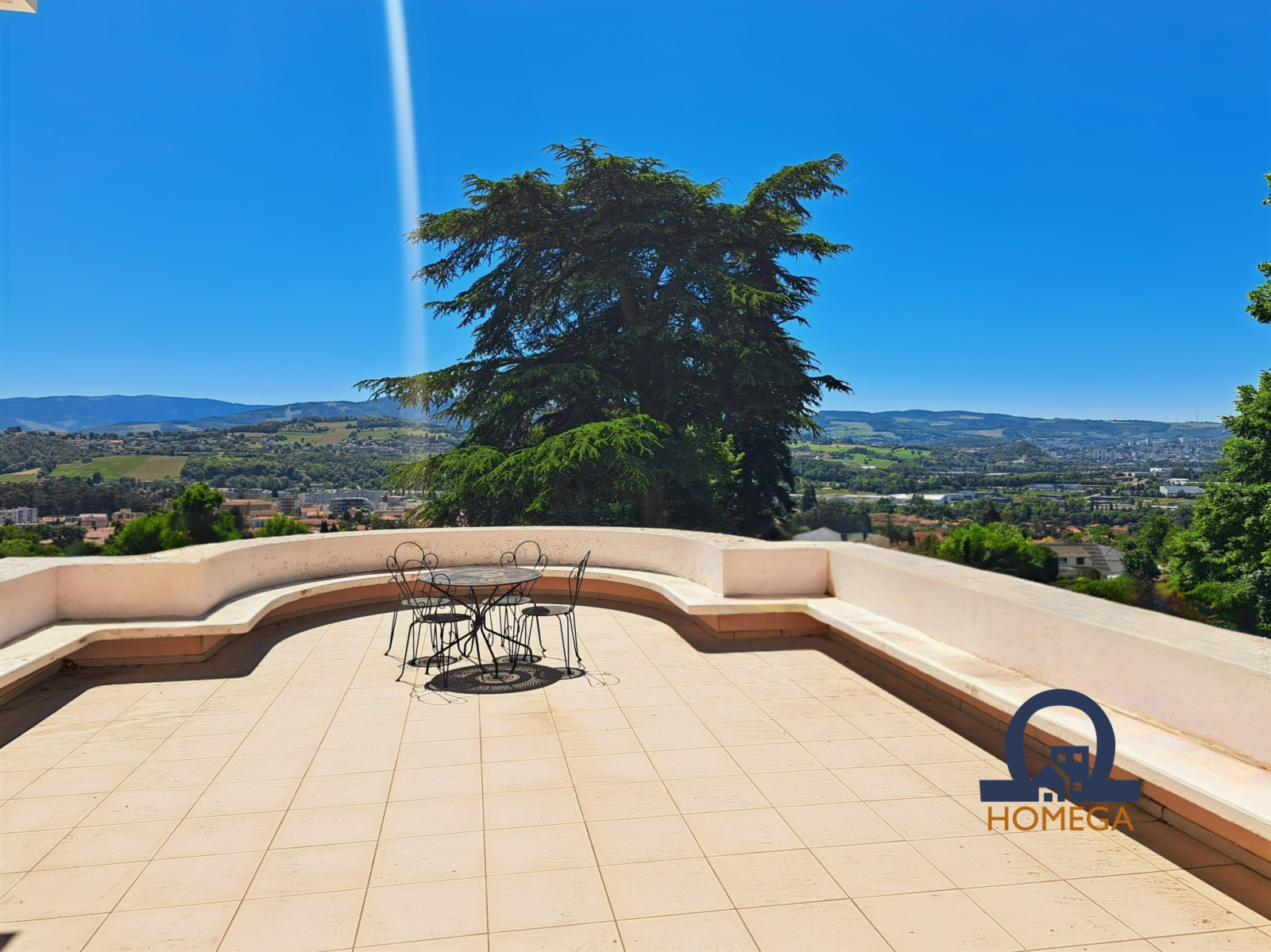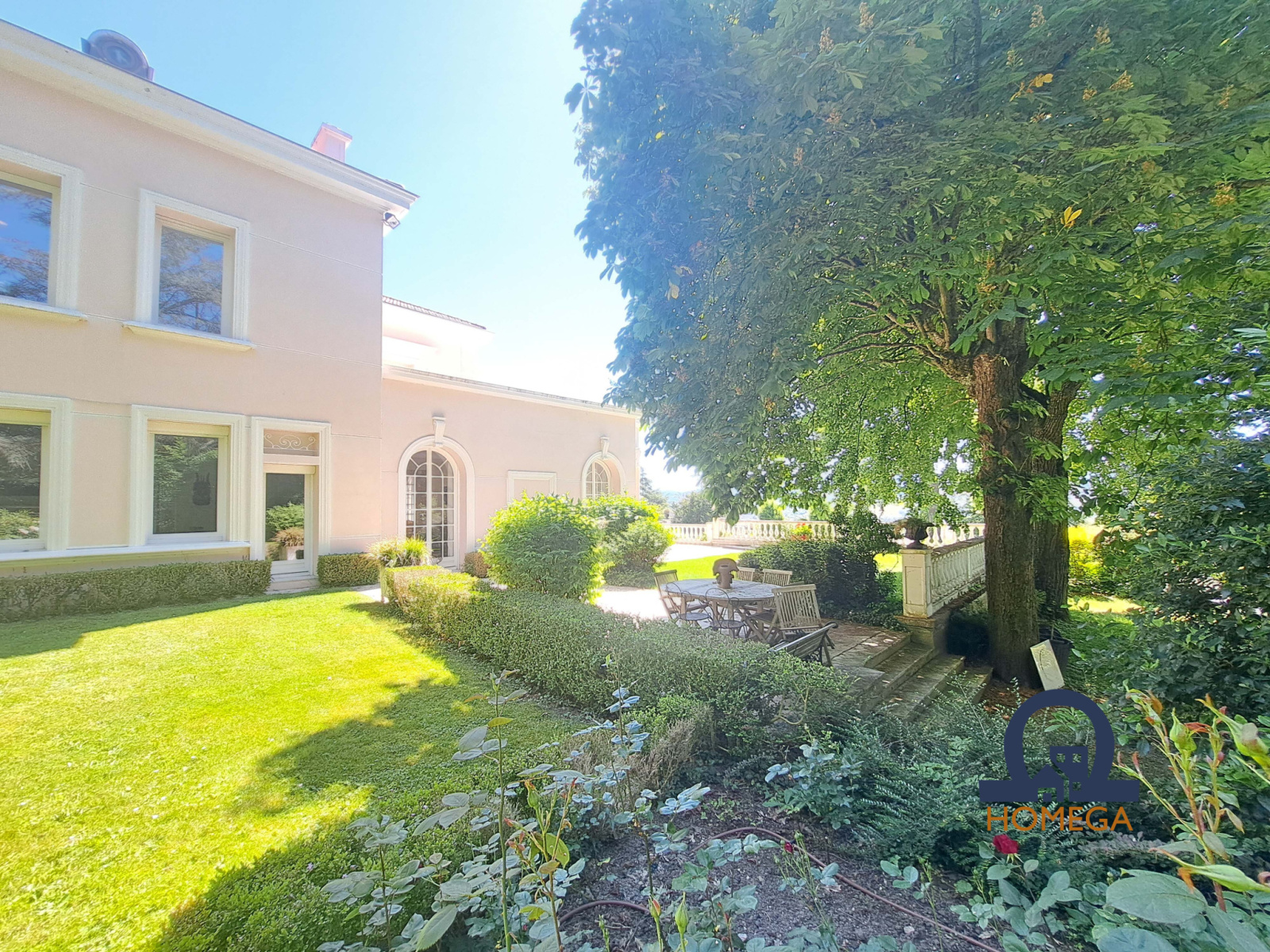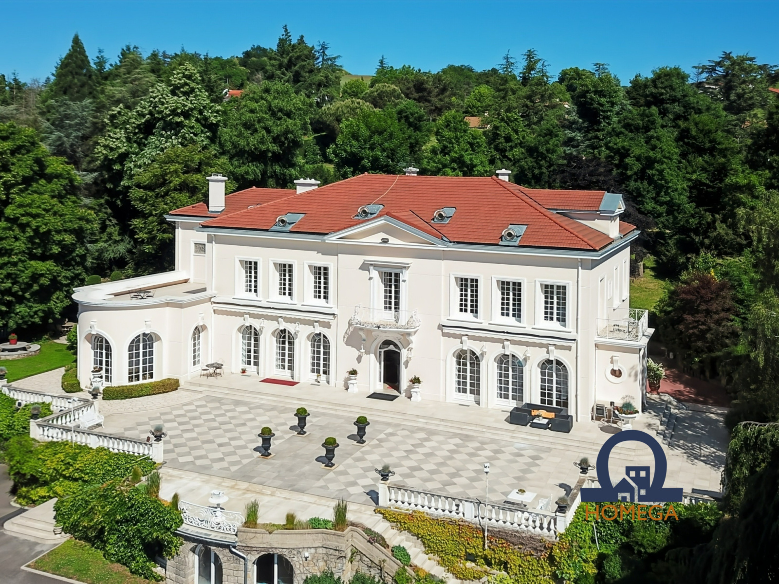 Une vaste terrasse plein sud de 300 m², entièrement dallée, idéale pour les réceptions estivales ;