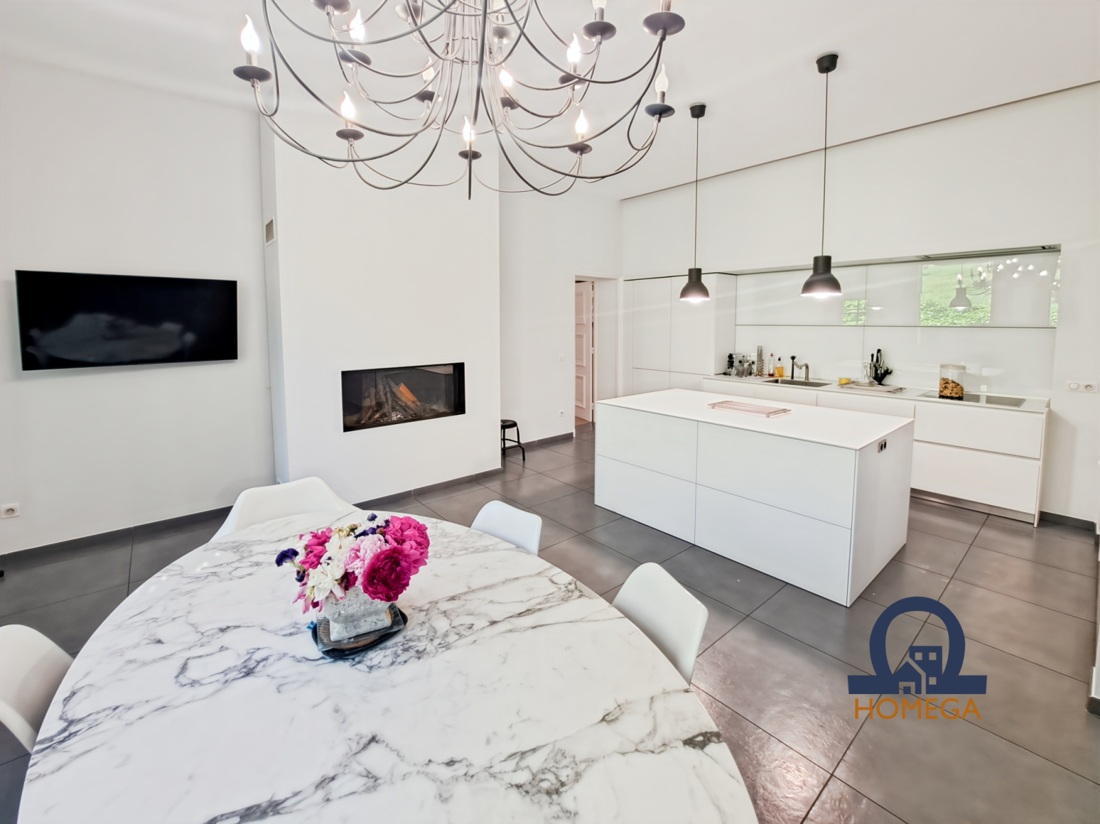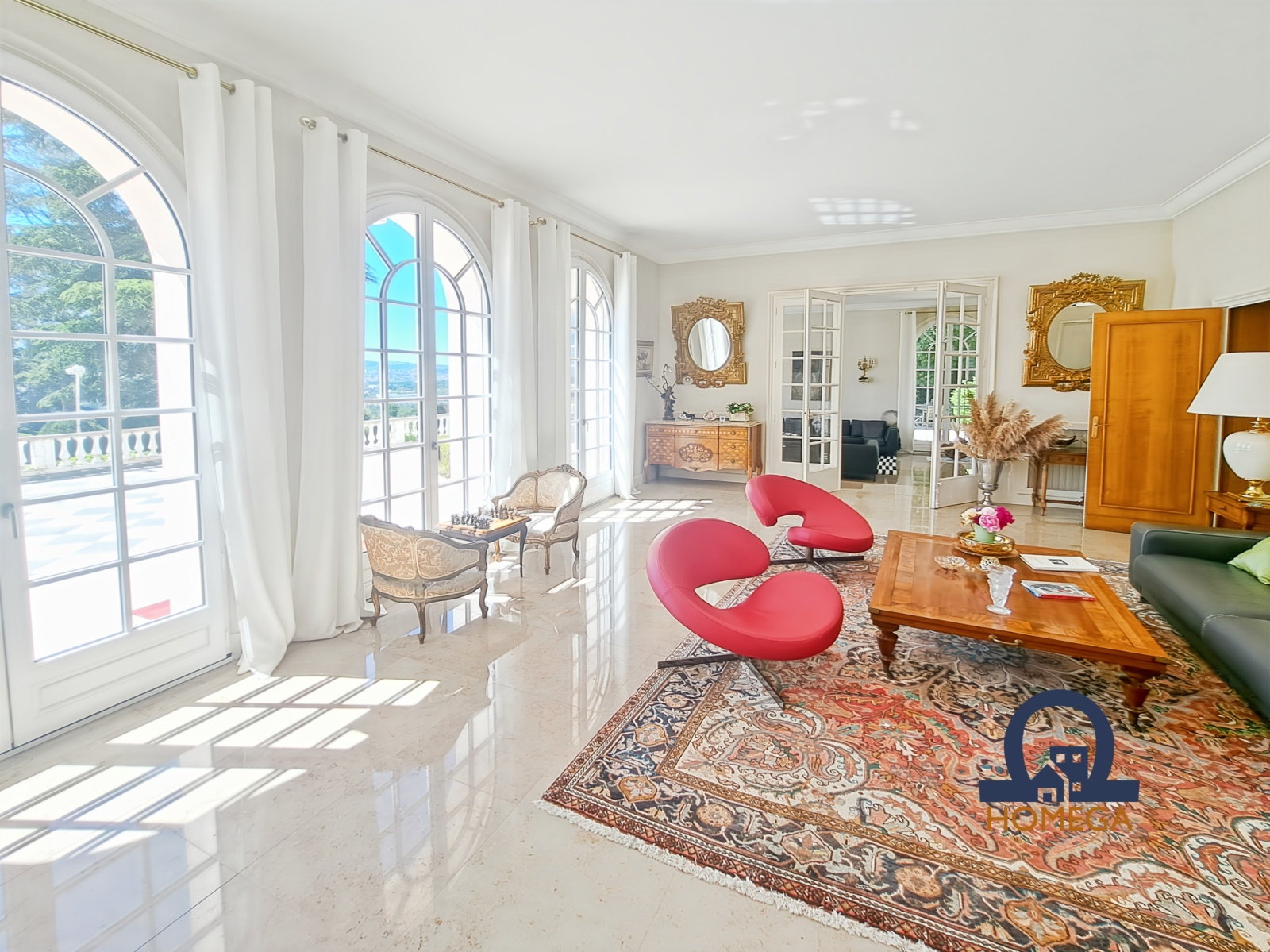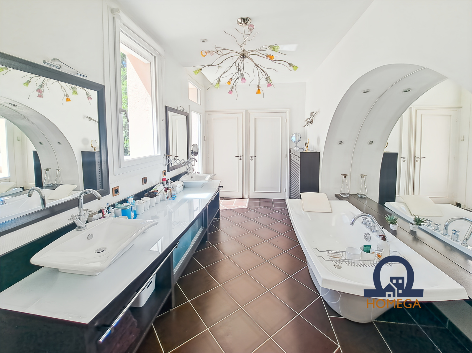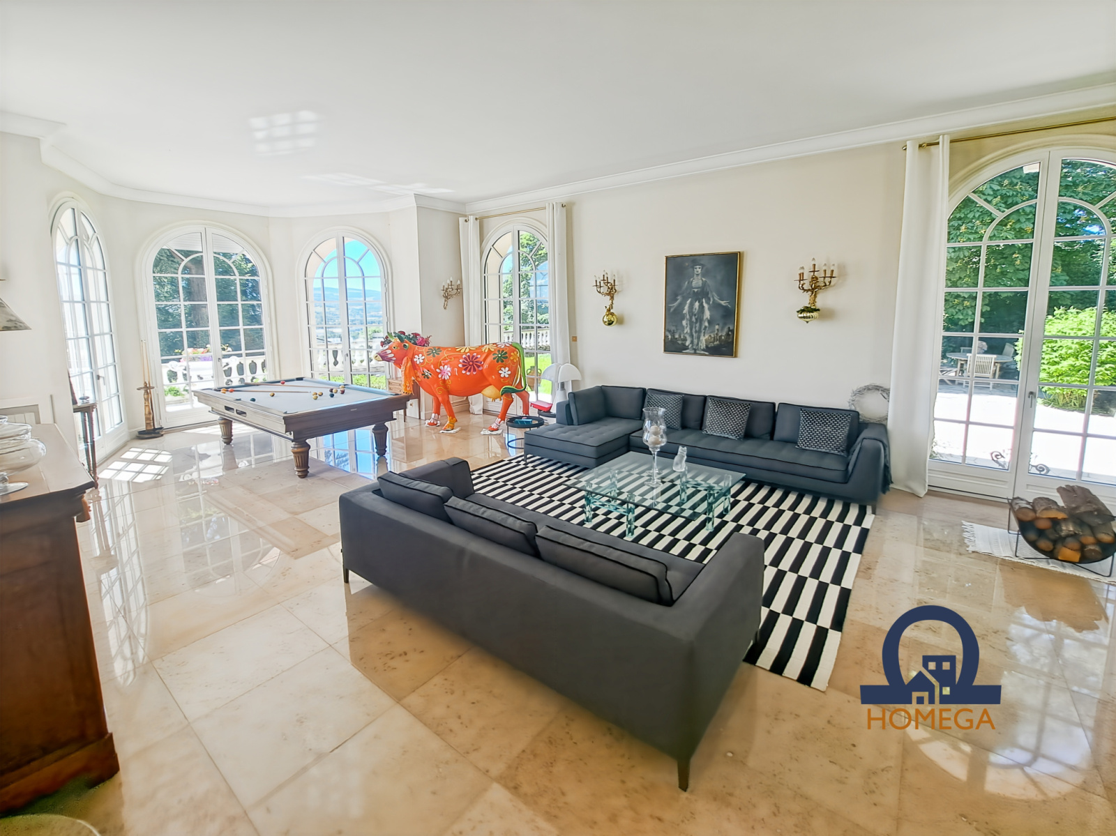 Une vaste terrasse plein sud de 300 m², entièrement dallée, idéale pour les réceptions estivales ;