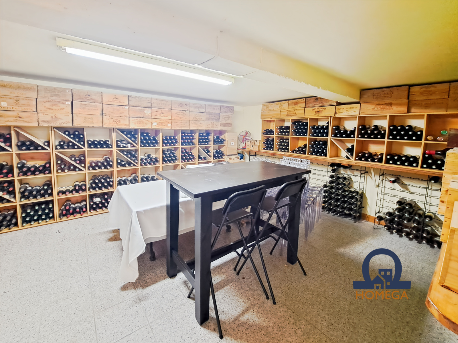 Et une véritable cave de conservation, aux conditions optimales, conçue pour accueillir et faire vieillir les plus belles bouteilles dans le respect des traditions œnologiques.